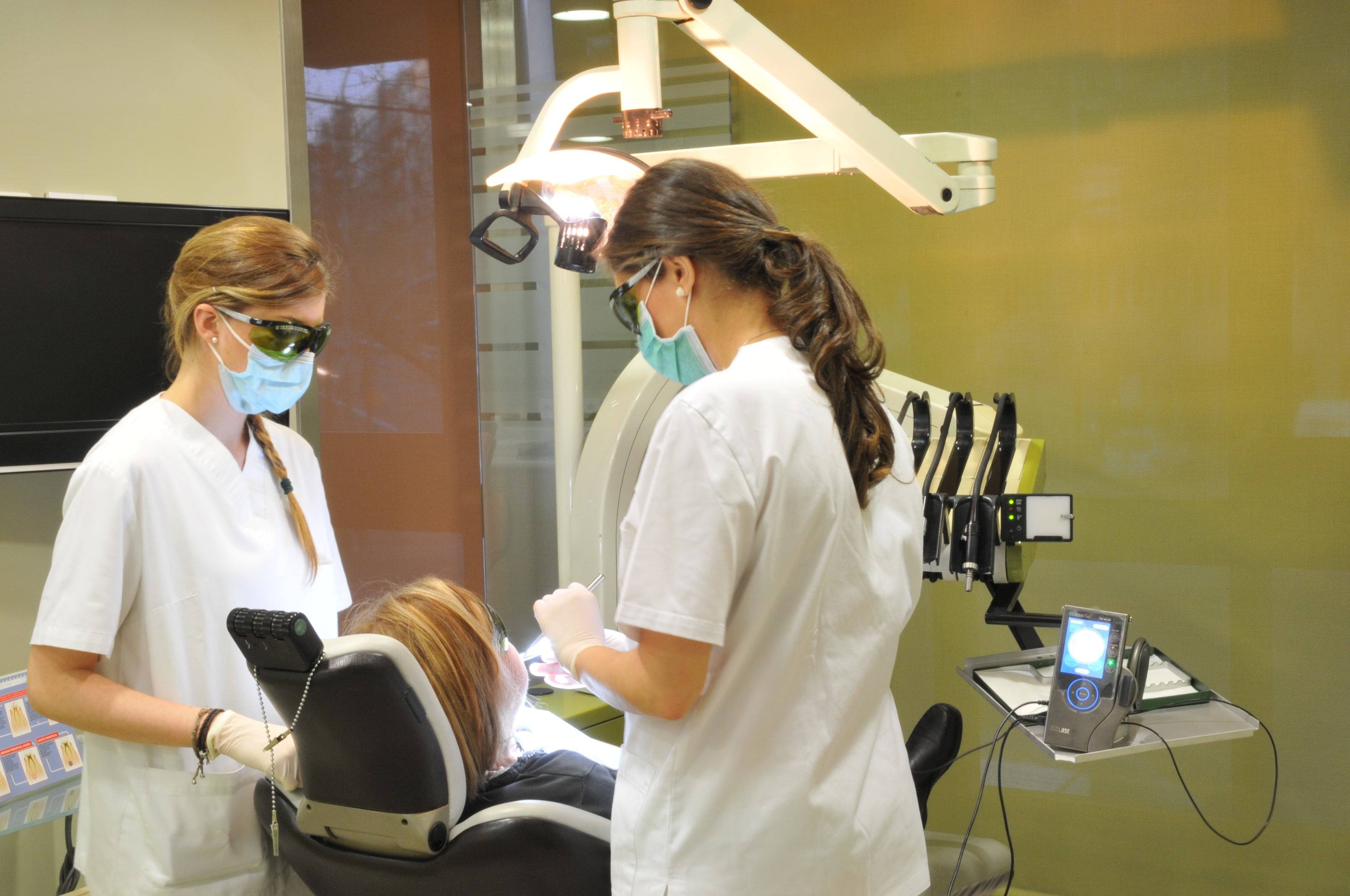 Imagen de otro gabinete, en este caso, durante un tratamiento dental con láser.